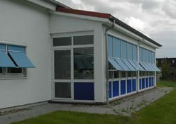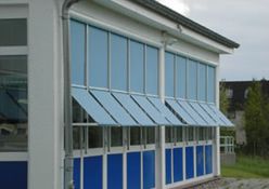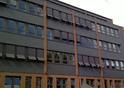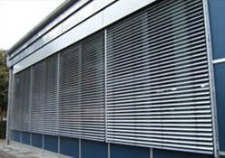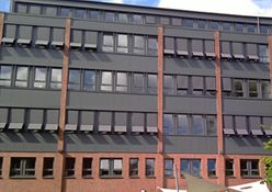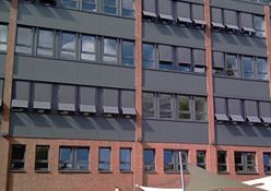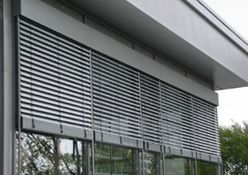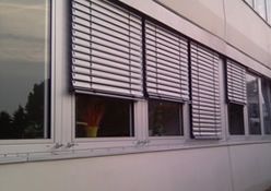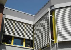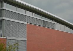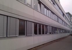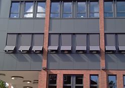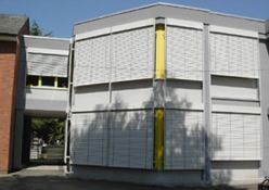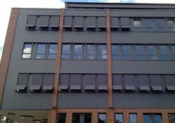 Sie sehen die GEA Tuchenhagen in Büchen, hier wurden 207 E80AFA2 Aussenraffstores mit Flachlamelle und Seilführung angebaut, Lamellenfarbe RAL 9006 weißaluminium.