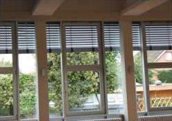 Die Bücherhalle Geesthacht freut sich über neue Warema Außenraffstores. Das Besondere an dieser Konstruktion ist, dass lediglich die Führungsschienen auf dem Fensterprofil befestigt werden.